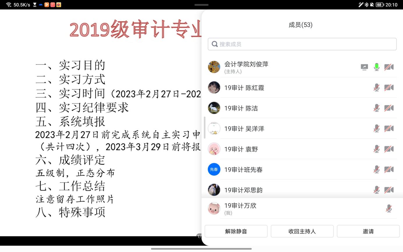 2月25日晚上8点,William希尔官网入口审计系通过线上方式召开2019级审计本科生毕业实习动员大会。会议由审计系系主任刘俊萍教授主持,指导教师黄晓芬及全体2018级审计本科生参加。