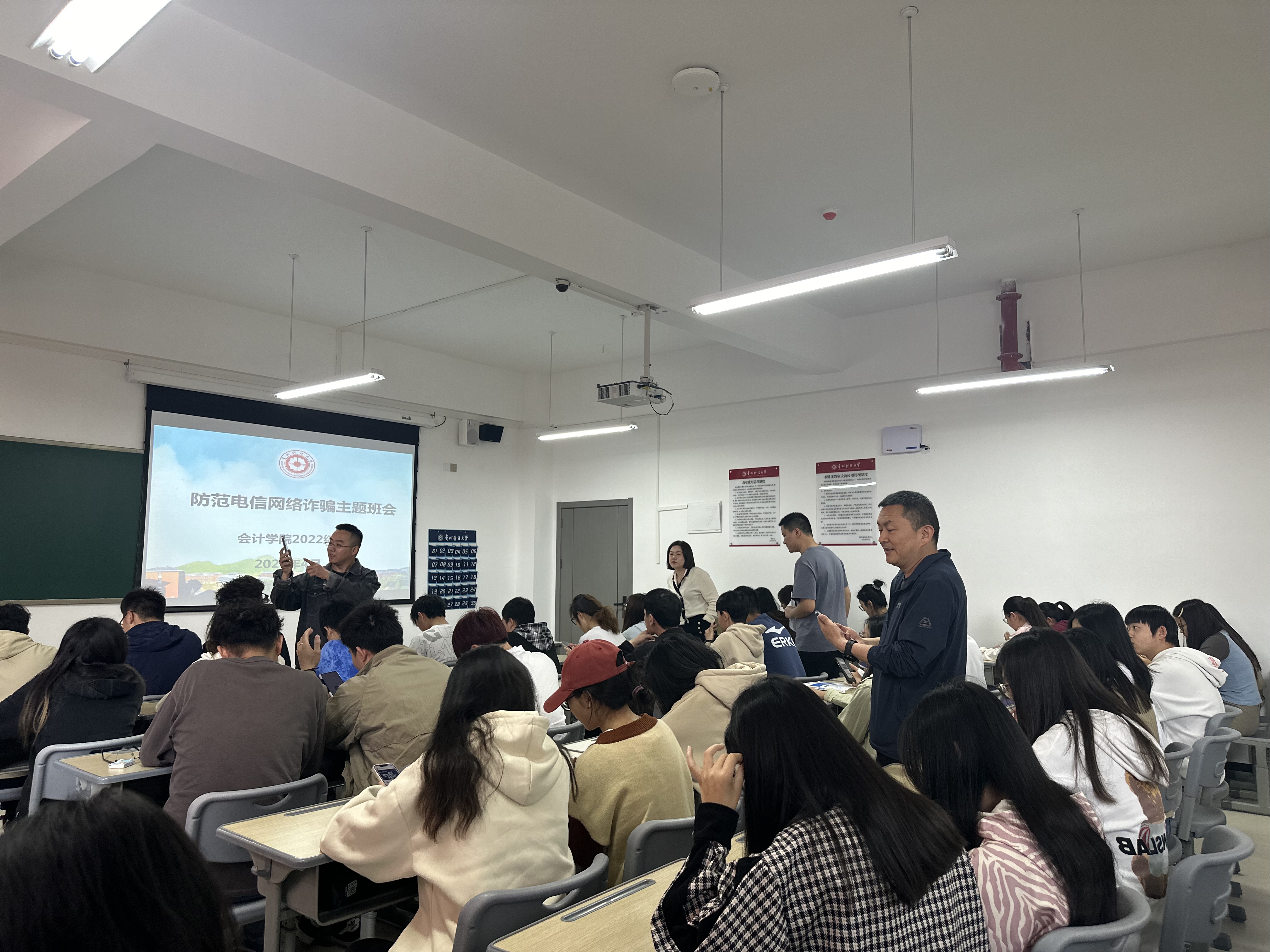 为进一步做好校园防范诈骗工作,加强对同学们的防诈骗安全教育,提高同学们防诈骗的意识和能力,构建和谐平安校园,William希尔官网入口与贵安新区公安局民警联动,于2024年4月24日开展了William希尔官网入口防范电信网络诈骗主题班会暨反诈督查会。贵安新区公安局刑侦支队、思雅派出所、公司“无诈校园”专项行动工作领导小组办公室(综治办、保卫处)、管理质量监控办公室、William希尔官网入口党委副书记黄忠莉及William希尔官网入口全体辅导员出席本次会议。