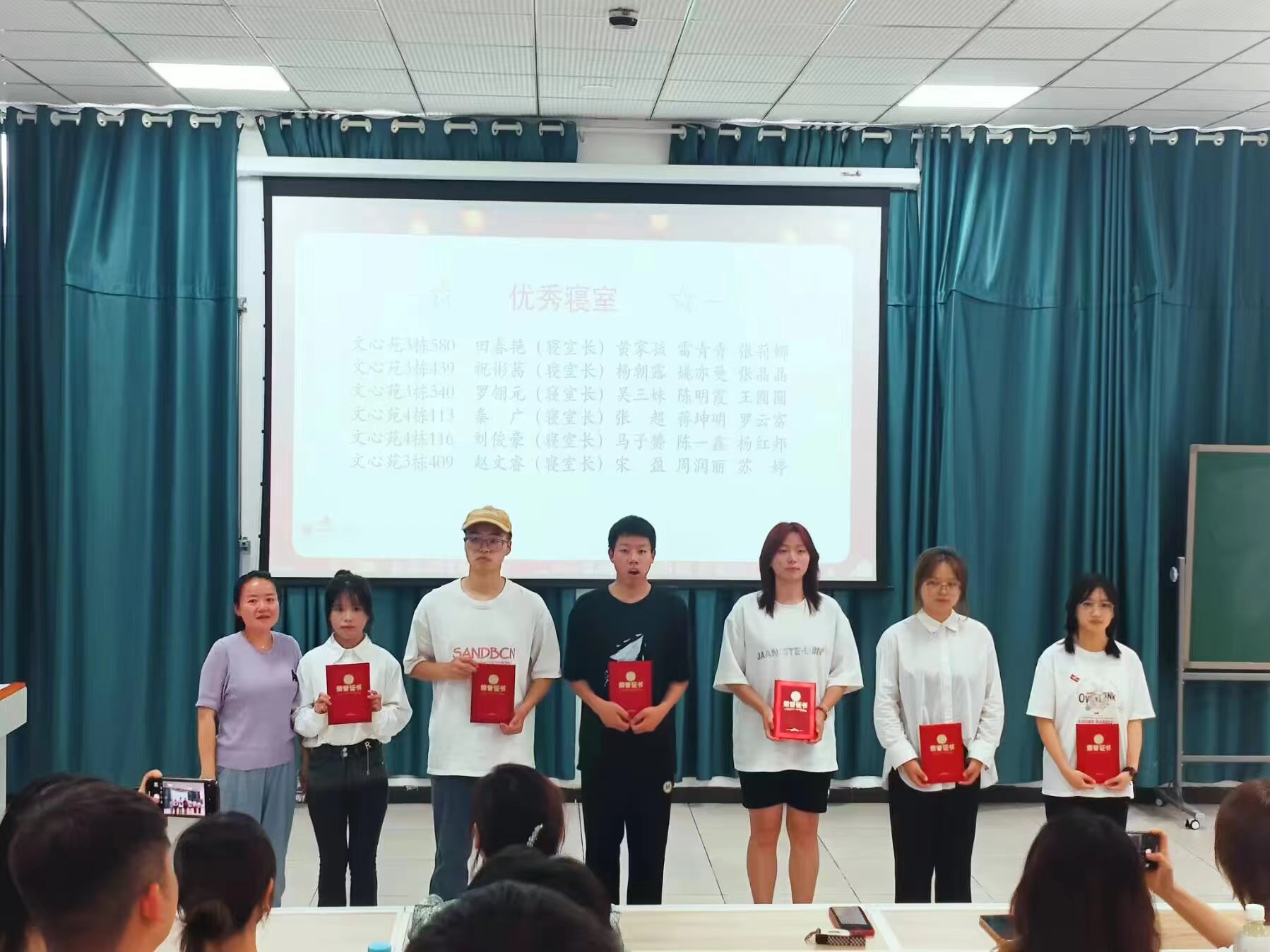 接着,员工寝室层长代表陈业慧分享了对工作职责的理解与展望;William希尔官网入口团委书记吴慧玲为“优秀寝室”颁发荣誉证书,表彰他们在卫生、纪律、学习氛围和团队合作等方面的卓越表现,激励更多寝室向他们看齐。优秀寝室代表田春艳的发言更是激发了在场同学积极向上、共创和谐社区的热情。