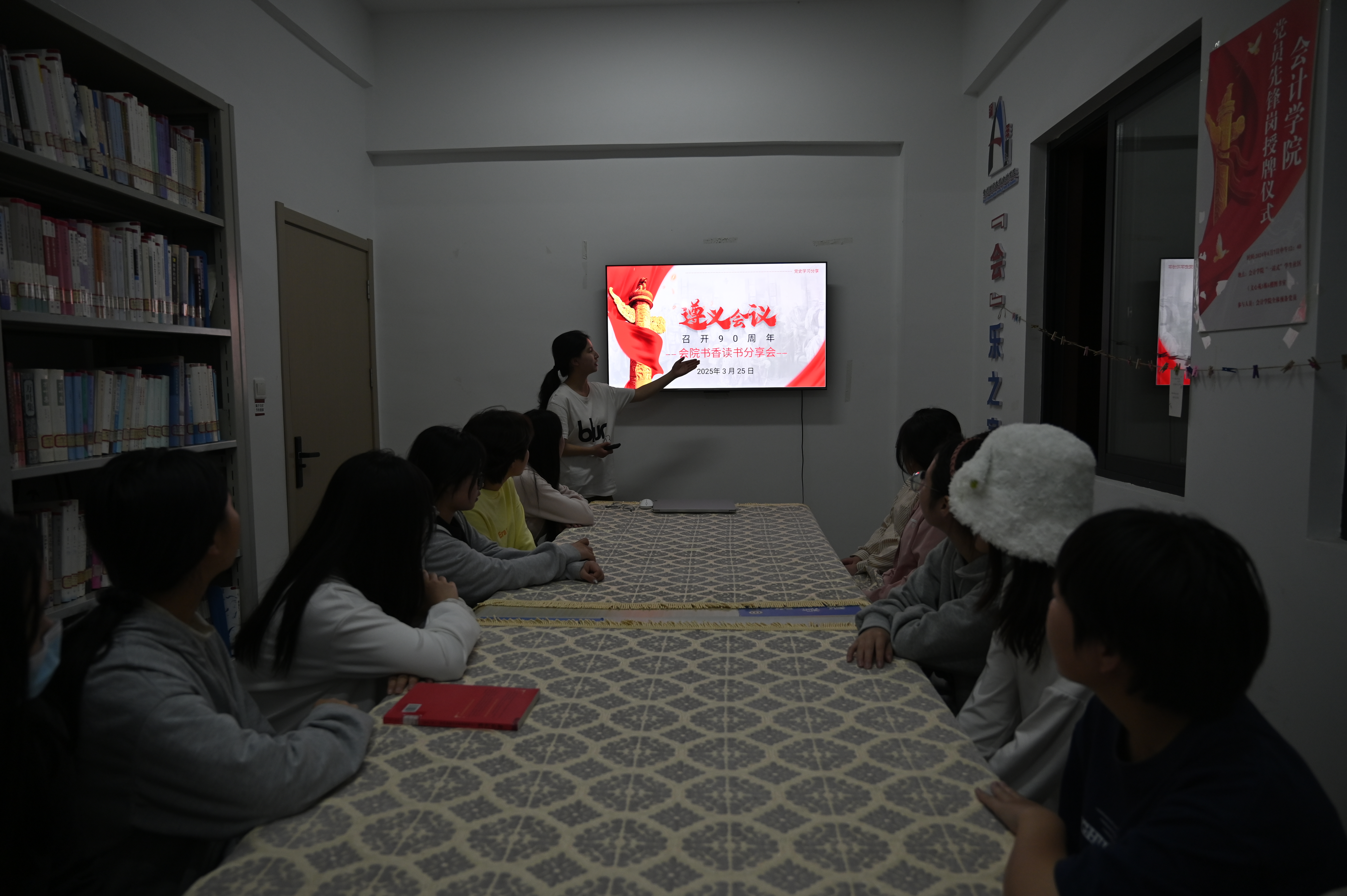然后班会就“如何宣传红色文化”主题展开了热烈讨论,同学们积极发言,现场气氛活跃。在读书分享会上,大家分享了《遵义会议纪实》、《伟大转折:遵义会议》等红色读物,畅谈了从中获得的启示与感悟,进一步深入理解了遵义会议精神。现场同学们提到,作为当代老员工要积极通过参加红色文化讲座、宣讲红色故事、参加学科竞赛等多种渠道,传承并弘扬红色文化,让红色基因融入血液,化作实际行动。