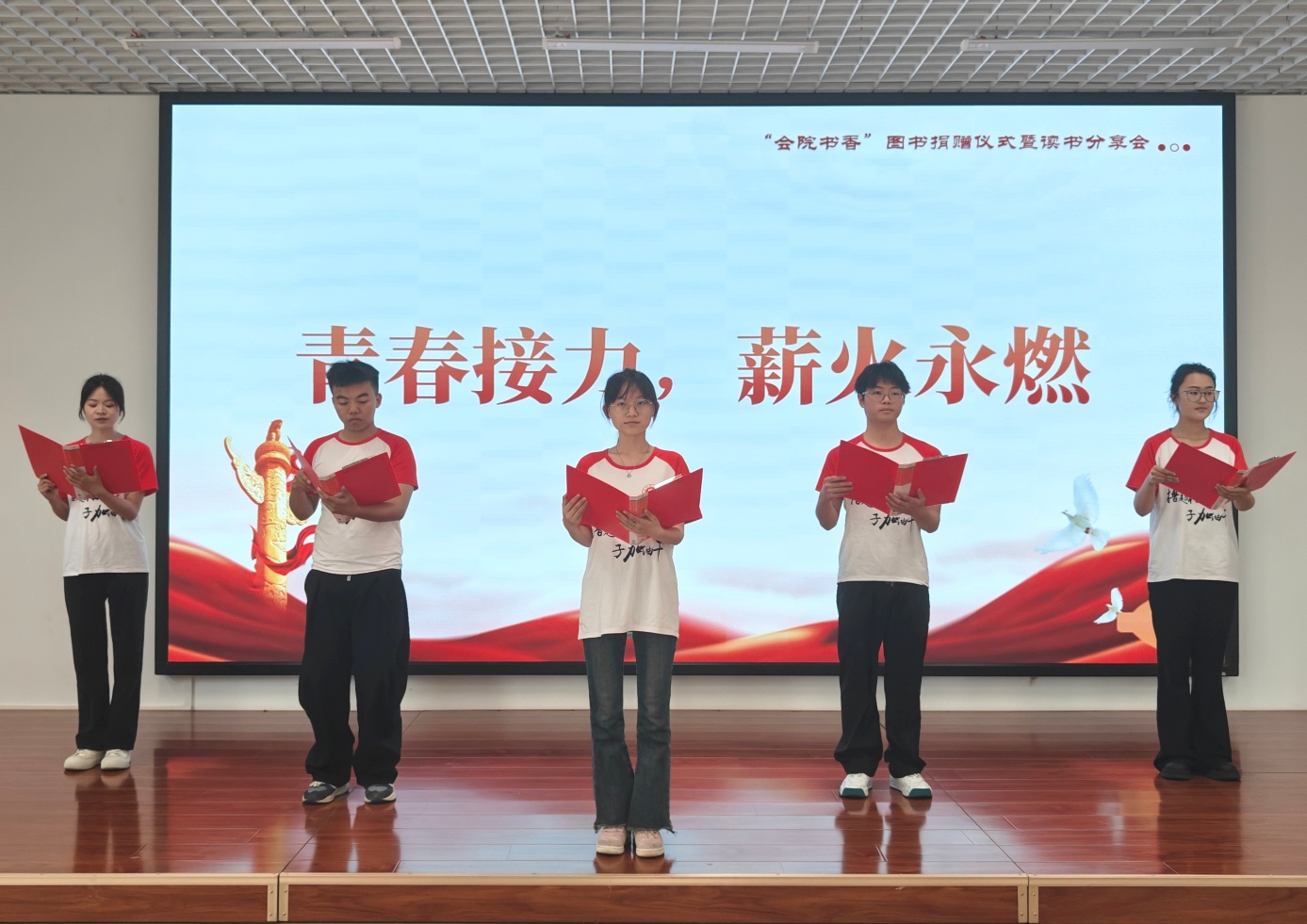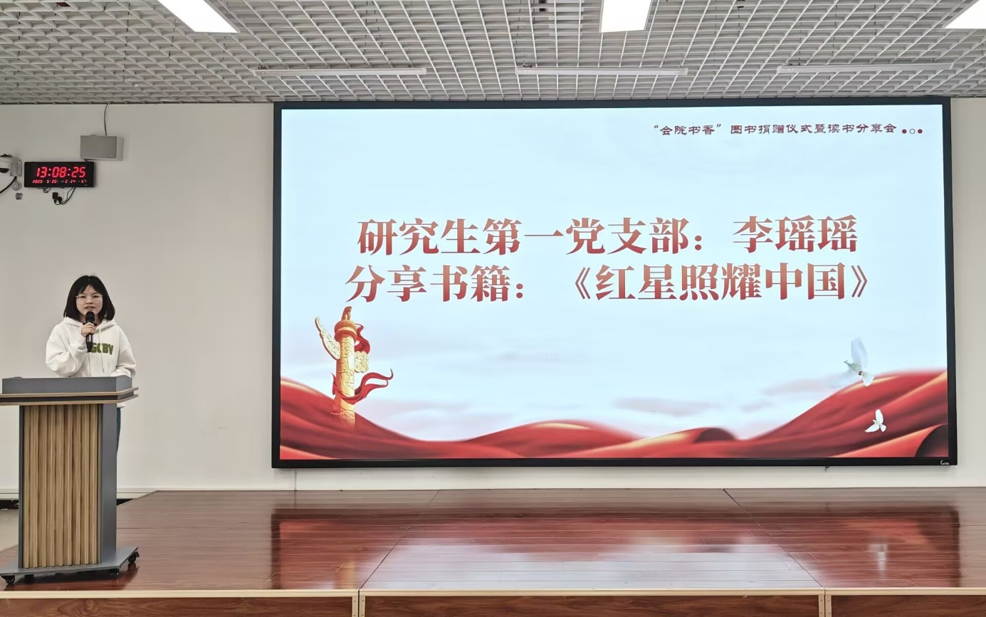 活动中,员工党建工作中心带来了朗诵《青春接力,薪火永燃》,他们用激昂的语调、真挚的情感,将青春的活力与传承的使命感展现得淋漓尽致。毕业生党员进行了图书捐赠,他们怀着对母校的眷恋与感恩,将精心挑选的103本图书郑重捐赠给学弟学妹们,希望通过书籍传递智慧与力量,让书香在校园持续流转。读书分享环节,各党支部推荐的分享人依次登台,分别带来《太阳照在桑干河上》《红色家书》《红星照耀中国》《革命的信仰》四本红色经典的深度解读。