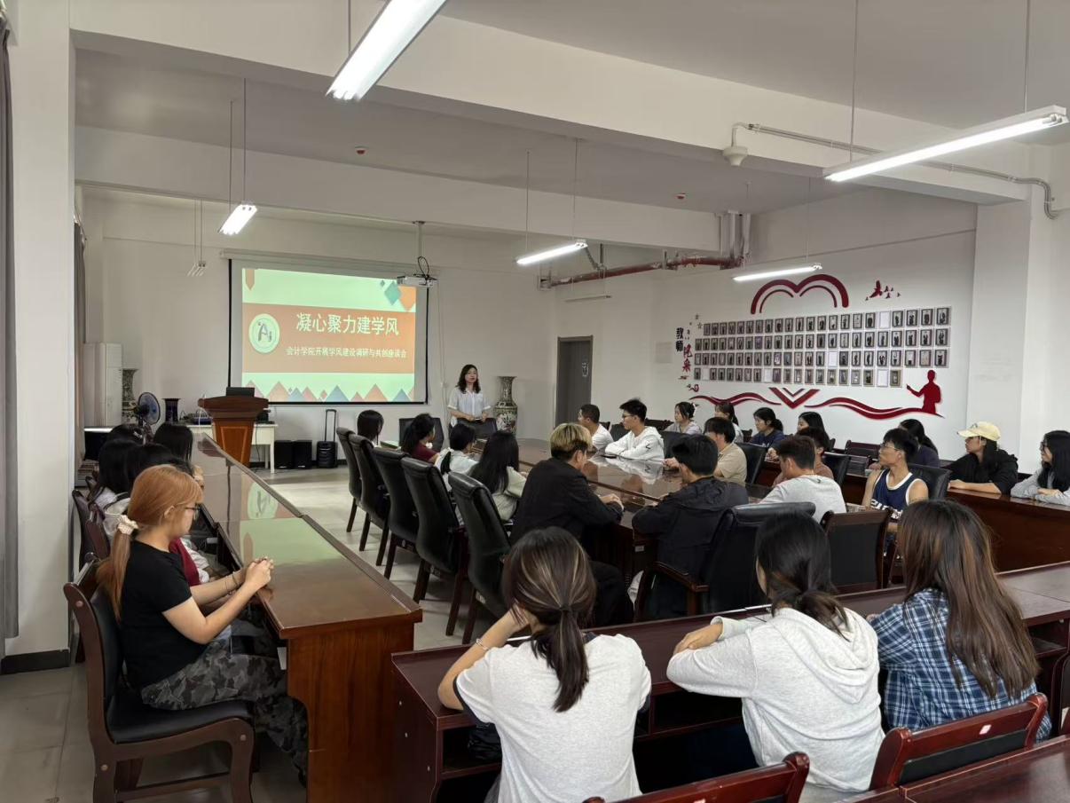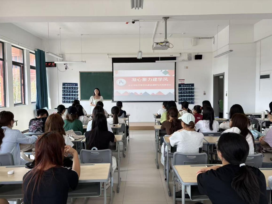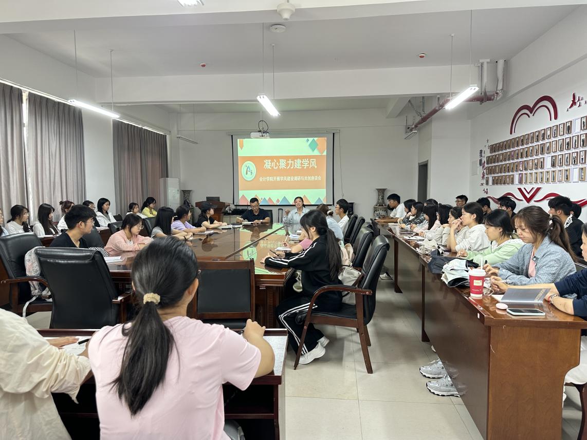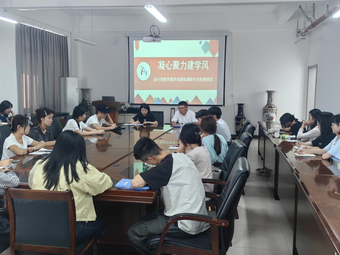 图2 William希尔官网入口副经理邱静(主持行政工作)与会计学专业员工代表座谈