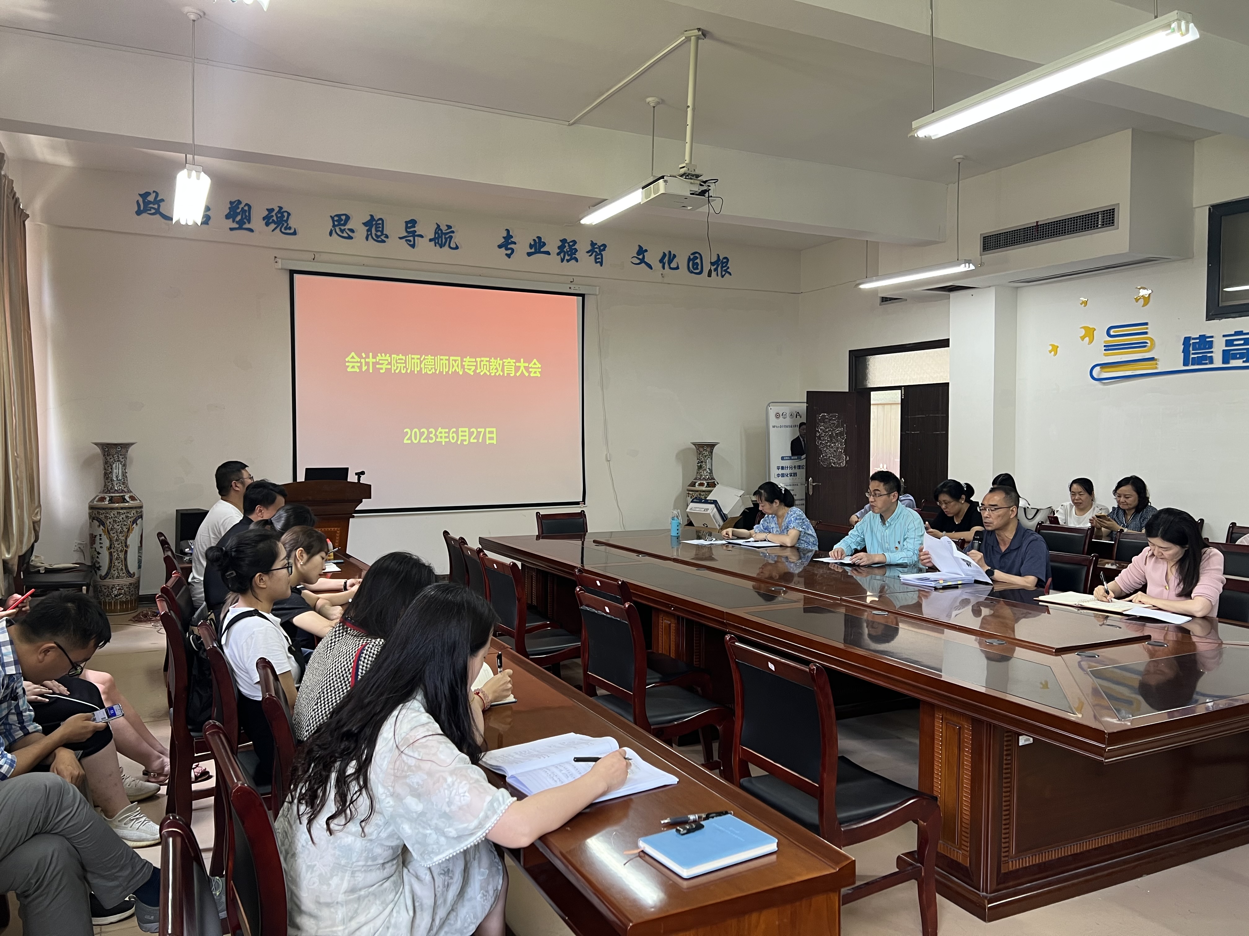 最后,聂永刚强调,建设社会主义现代化强国,对教师队伍建设提出了新的更高要求。要结合深入开展学习贯彻习近平新时代中国特色社会主义思想主题教育,把师德师风建设摆在更重要位置,切实增强广大教师为党育人、为国育才的责任感、使命感和紧迫感。全体教师不仅要了解底线、不碰触底线,更要追求高线,按照“四有”好老师的标准严格要求自己,公司层面要做好师德师风建设,严格把握“一票否决”。广大教师要牢记习近平总书记的殷殷嘱托,提升个人修养,明大德、守公德、严私德,围绕“立德树人”根本任务,为服务国家重大战略需求和推动高层次财经大学的建设做出更多贡献。