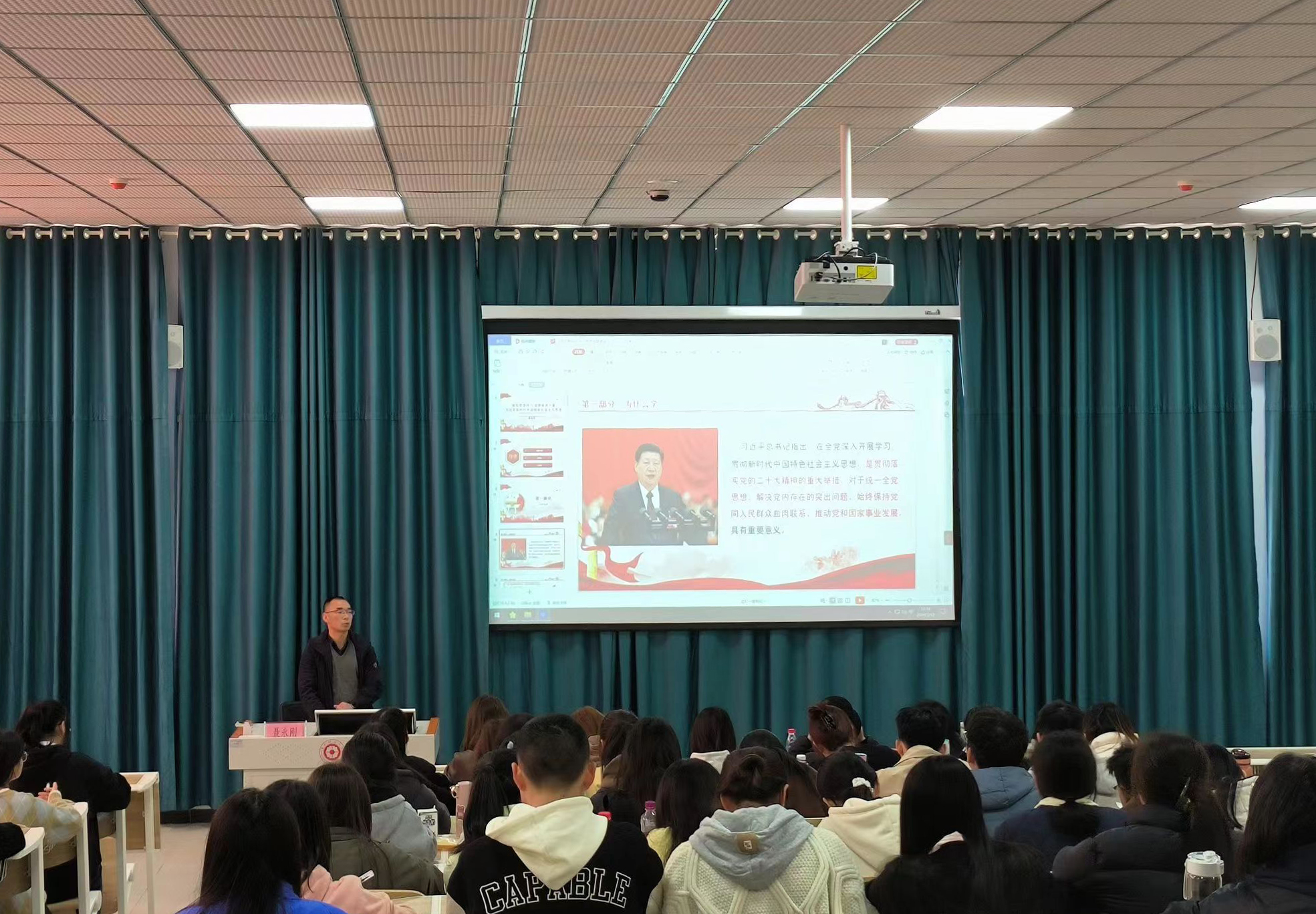 开班仪式结束后,公司党委书记聂永刚以《深入学习贯彻习近平新时代中国特色社会主义思想》为题,为全体学员上第一堂党课。