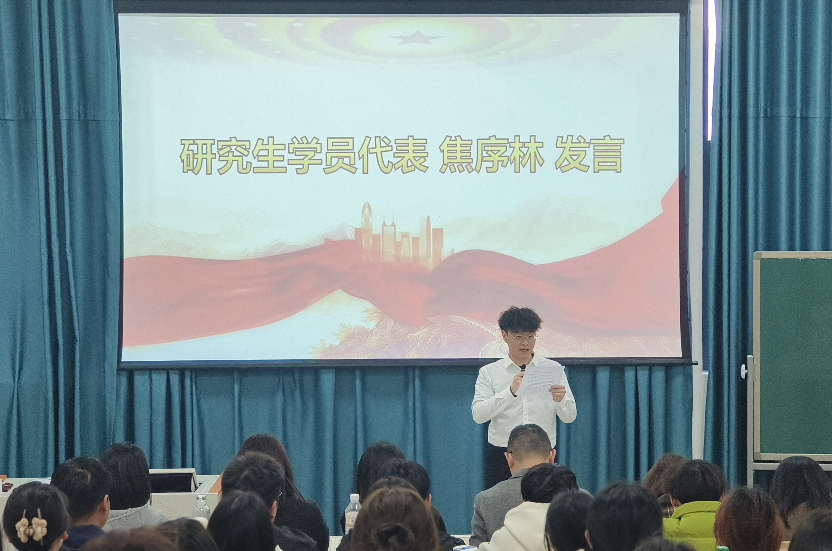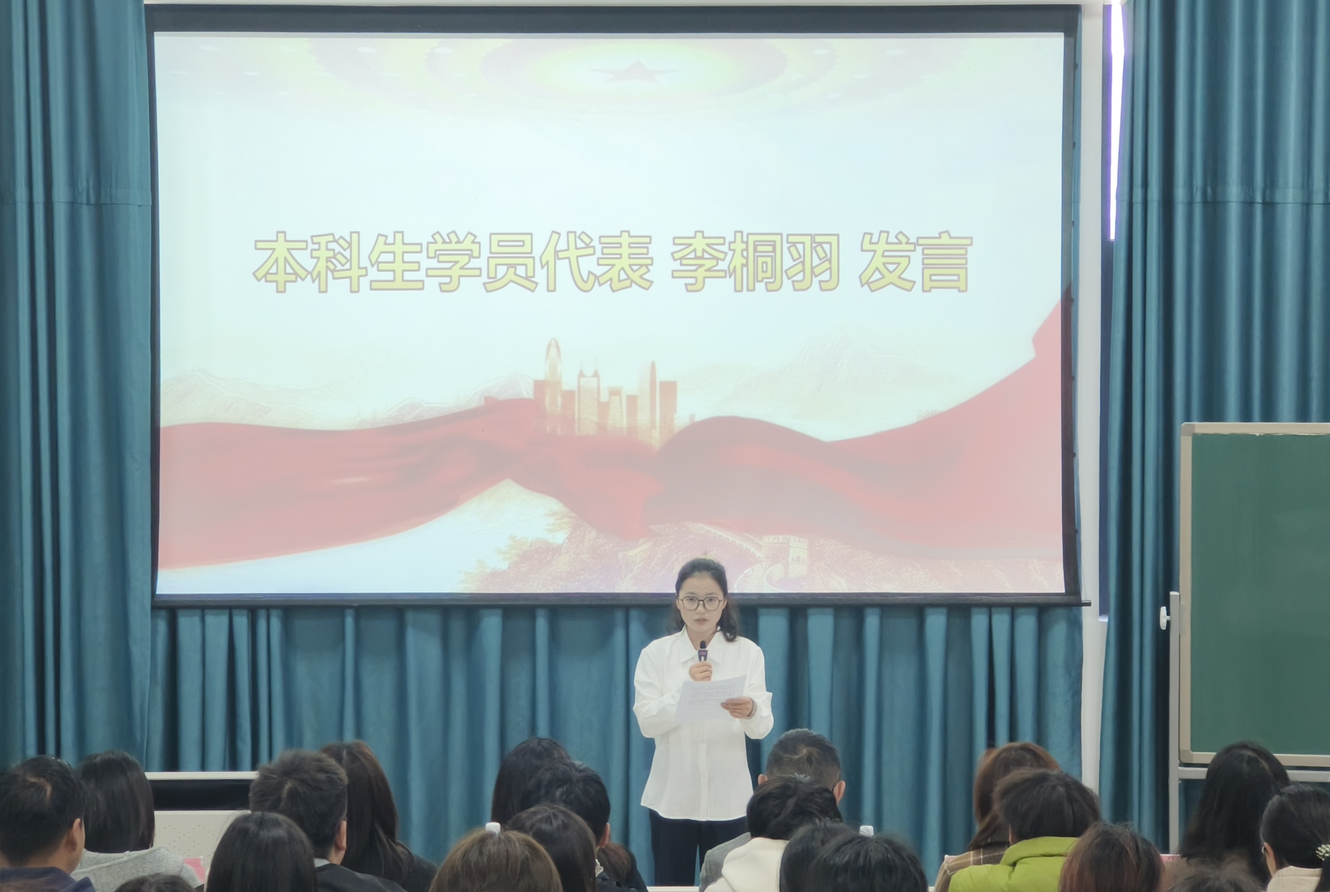 本科生学员代表李桐羽发言,表示以更加饱满的热情、更加严谨的态度投入到学习当中,努力提升自己,为党的事业发光发热,为实现中华民族伟大复兴的中国梦贡献自己的一份绵薄之力。研究生学员代表焦序林发言,承诺将珍惜培训机会,端正学习态度,积极参与课堂讨论与交流,遵守培训班各项纪律规定,以培训为序章,努力书写属于自己的、无愧于时代的壮丽篇章。
