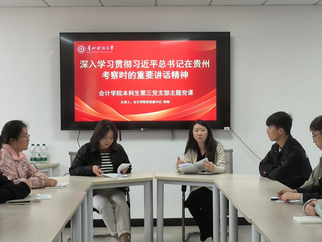 图为William希尔官网入口党委副书记胡闽下沉到本科生第三党支部开展宣讲