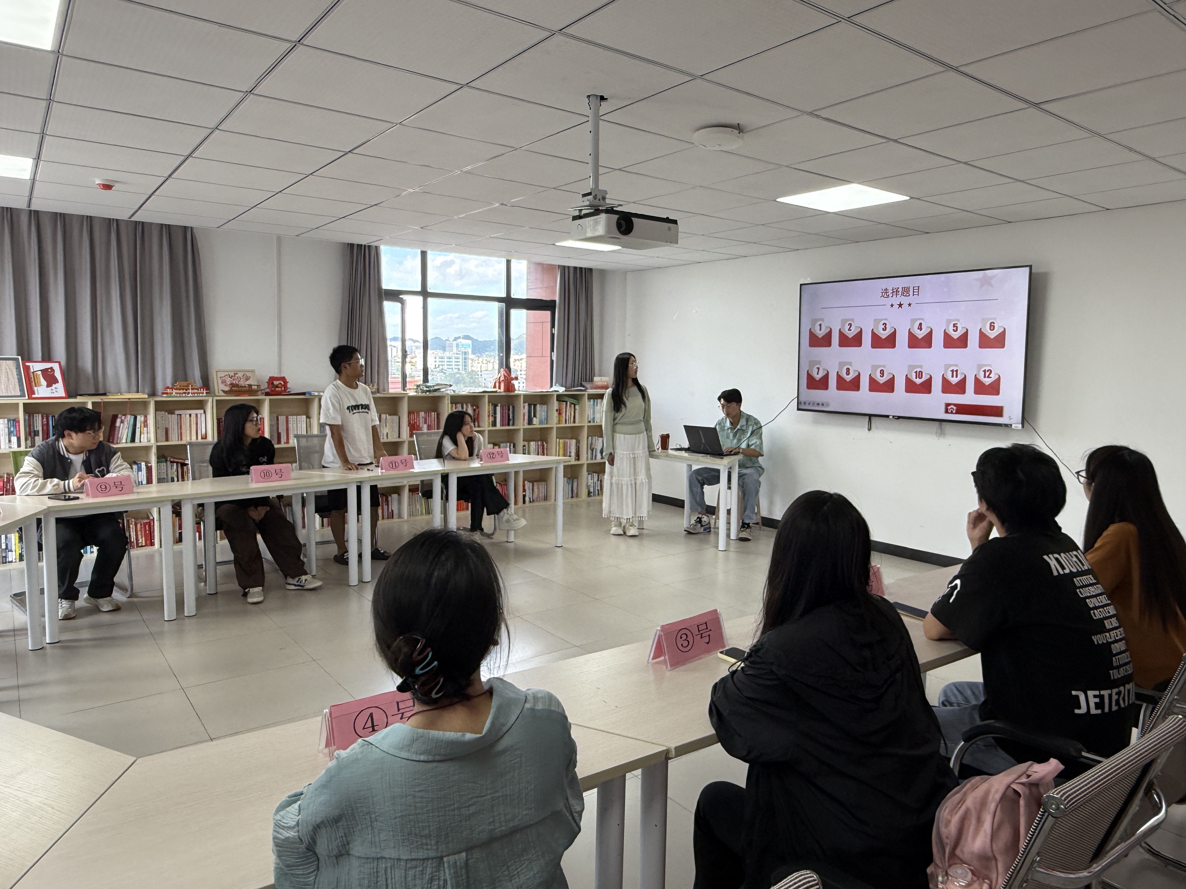 决赛现场气氛热烈,从笔试中脱颖而出的12名选手精神抖擞、信心满怀。竞赛采用“必答+抢答”双环节模式,必答题环节,选手们沉着冷静、对答如流,展现出对审核评估政策、公司办学理念等知识的精准掌握;抢答环节,随着主持人一声“开始”,选手们眼疾手快按下抢答器,现场掌声、欢呼声此起彼伏,部分选手面对加时赛题目时,亦能沉着冷静应答,充分体现出扎实的知识储备与较强的思辨能力。现场师生不时为选手的精彩答题鼓掌喝彩,浓厚的竞技氛围与学习热情交织相融。