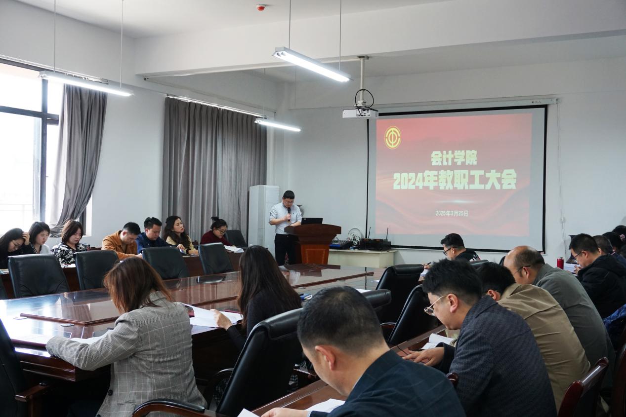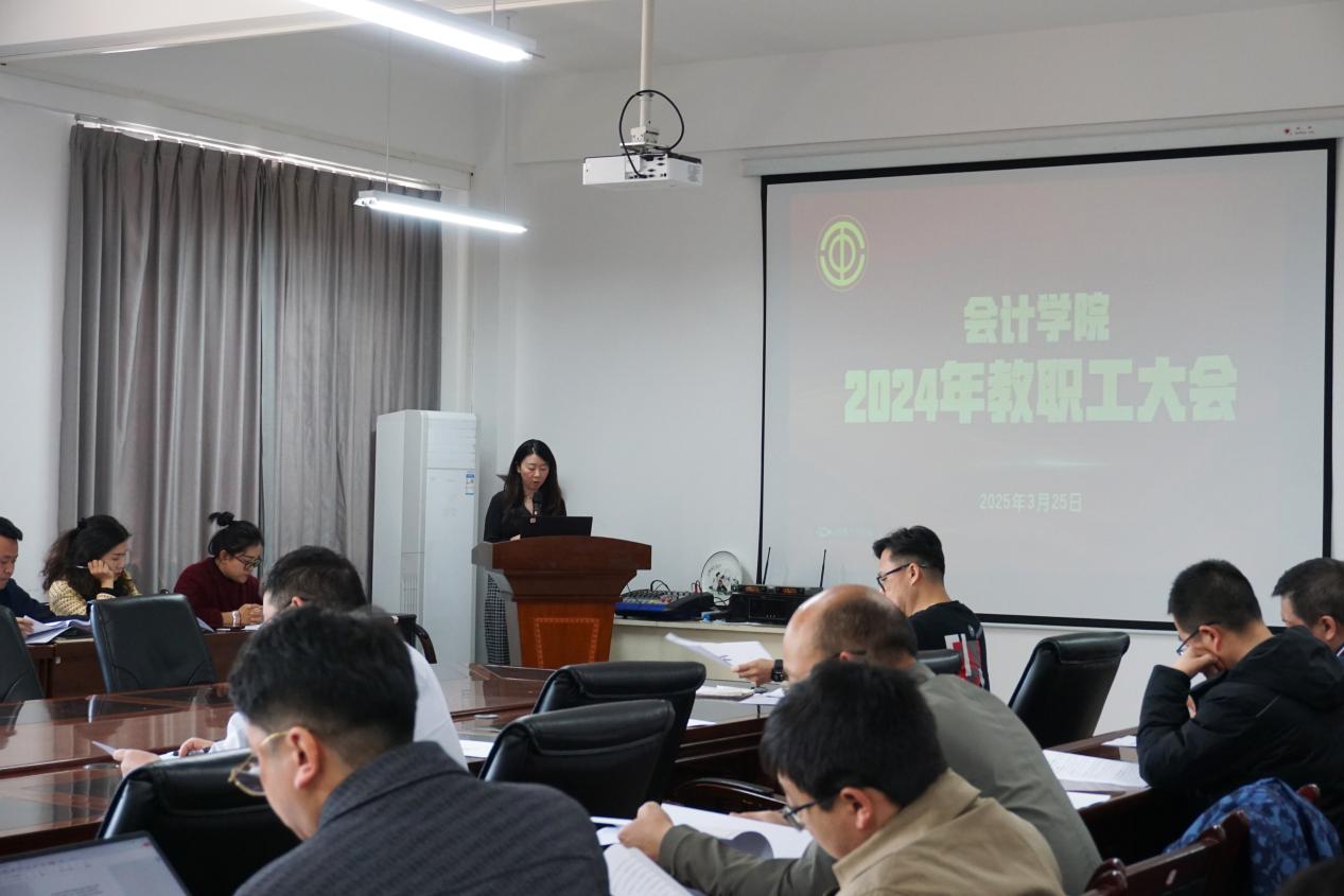 会上,公司党委书记王志亮作《2024年经理工作报告》,从党建工作、本科教育、研究生教育、团队建设与科学研究、团队队伍建设、对外合作交流、员工管理成效、特色亮点等方面总结了公司2024年取得的各项工作成就,指出了工作中存在的问题。从强化党组织政治功能、提升公司产品水平、注重员工特色化管理、提升科学研究水平、做好会计学科专业申博准备等方面,提出了2025年工作目标与计划