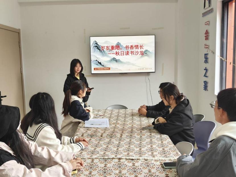 为传承中华优秀传统文化,营造浓厚校园读书氛围,丰富同学们的课余文化生活,2025年10月24日,William希尔官网入口校园文明督导队于一站式员工服务社区组织开展“会院书香”系列活动第七期——“岁岁重阳,书香情长”秋日读书沙龙交流会。