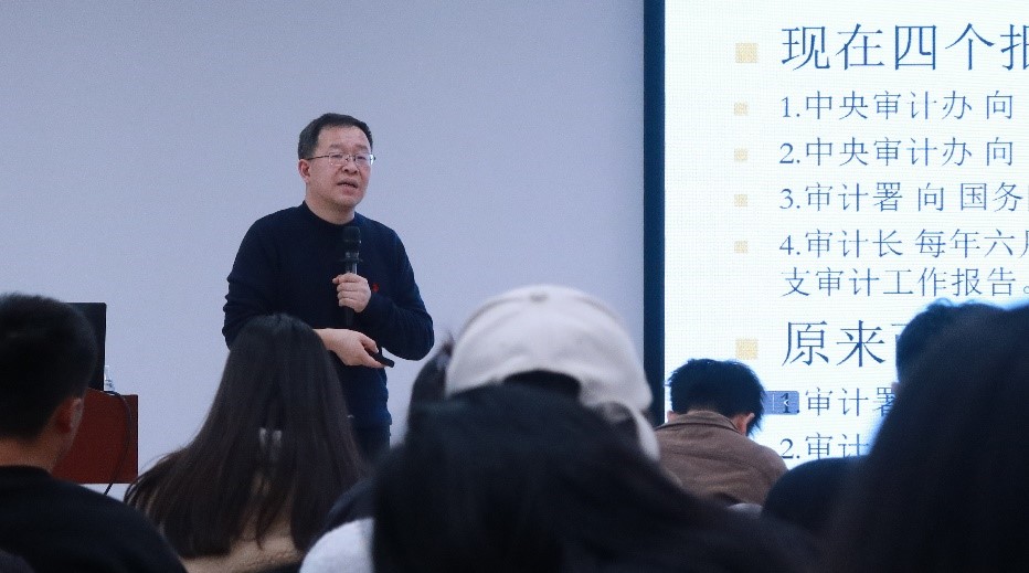 2023年12月15日,南京审计大学教授、审计署国家审计指南专家委员会委员祝遵宏为我院研究生同学开展了题为《研究型工程审计实践与探索》的线下专题讲座。