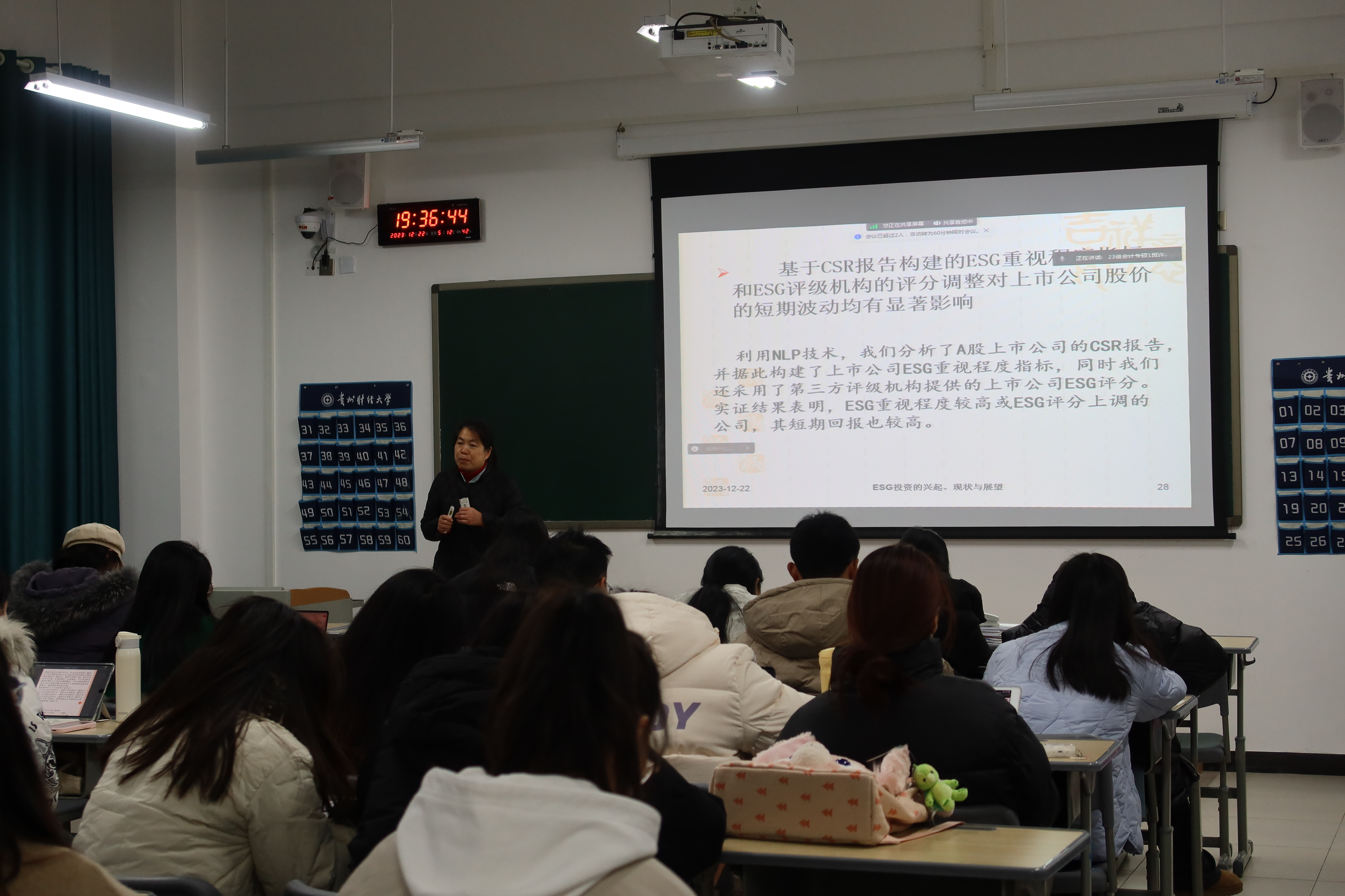 在讲座中,同学们积极参与,讨论热烈。通过学习,使同学们深入了解了ESG投资的相关知识,对同学们的学习和研究起到积极作用。