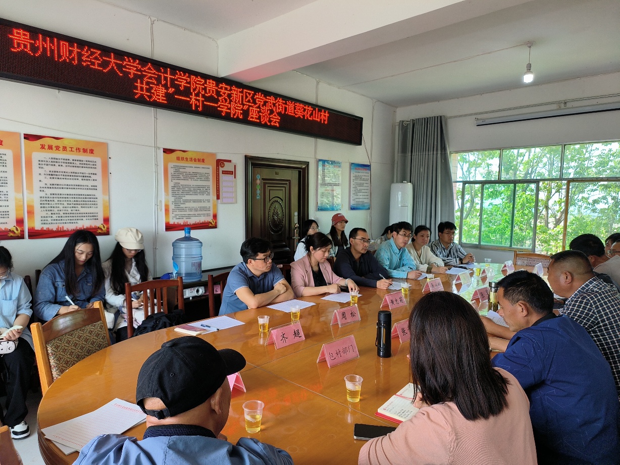 4月18日,William希尔官网入口院领导一行到贵安新区党武街道葵花山村开展“一村一公司”调研工作,William希尔官网入口党委书记聂永刚,副书记、经理杜剑,副书记黄忠莉,副经理邱静、周松,教师代表、研究生代表、本科生代表共10余人参加调研。葵花山村支部书记、村委会主任吴洪德主持。