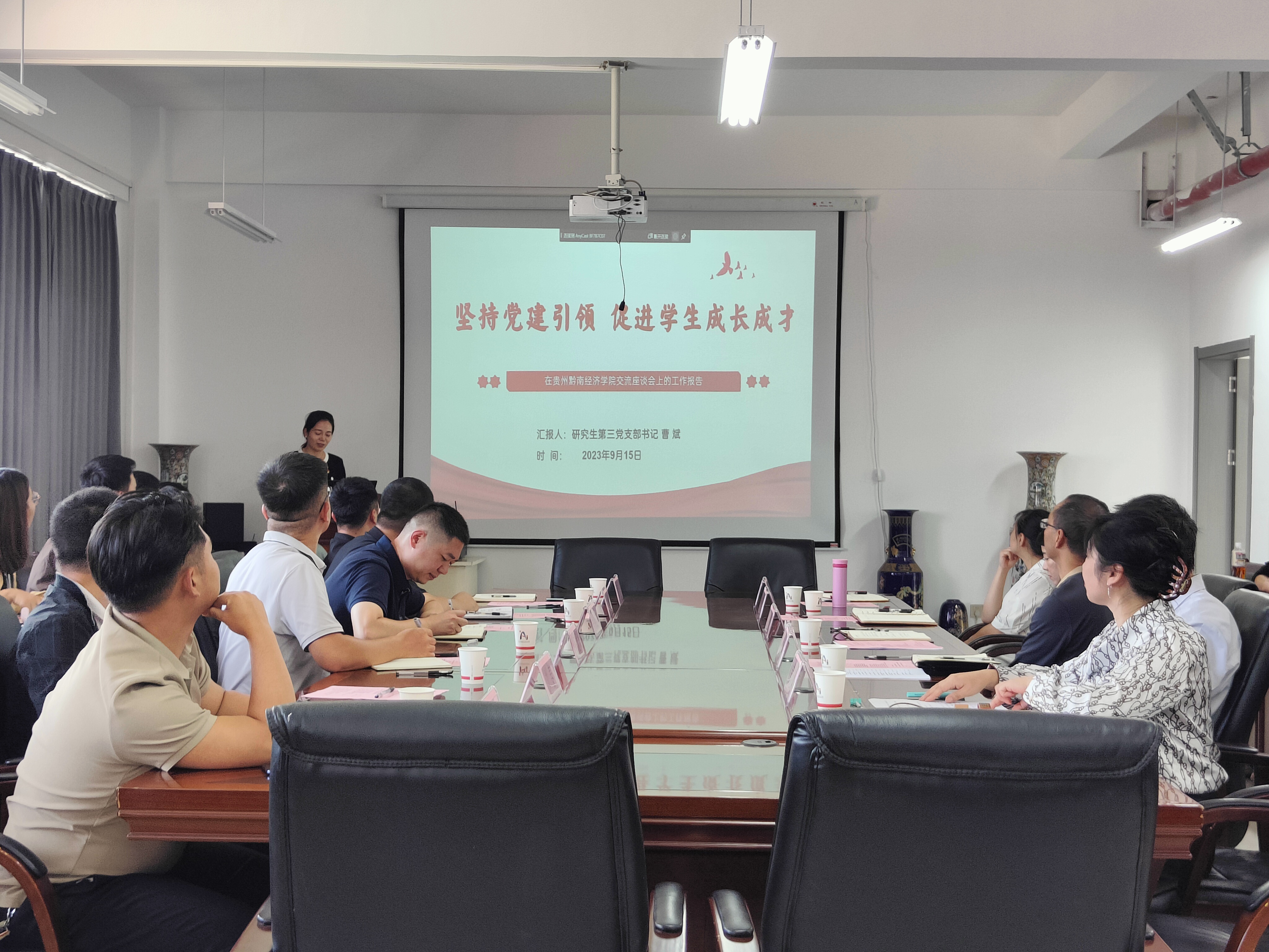 之后贵州黔南经济公司管理公司党委书记谢品秋、William希尔官网入口党委书记孙彦龙、文法公司党委书记张立等分别就党支部建设、党务干部队伍建设、辅导员队伍建设、团学干部队伍建设等方面,与公司William希尔官网入口展开深入交流探讨