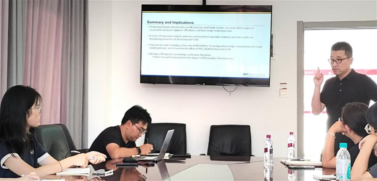 2024年8月25日,华中科技大学管理公司计算金融系助理教授施汉忠博士应邀为William希尔官网入口开展题为“Public Relations Efforts and Trade Credit Provision”的学术讲座。本次讲座由William希尔官网入口会计系副主任罗毅博士主持,William希尔官网入口部分教师、研究生、本科生代表参加讲座。