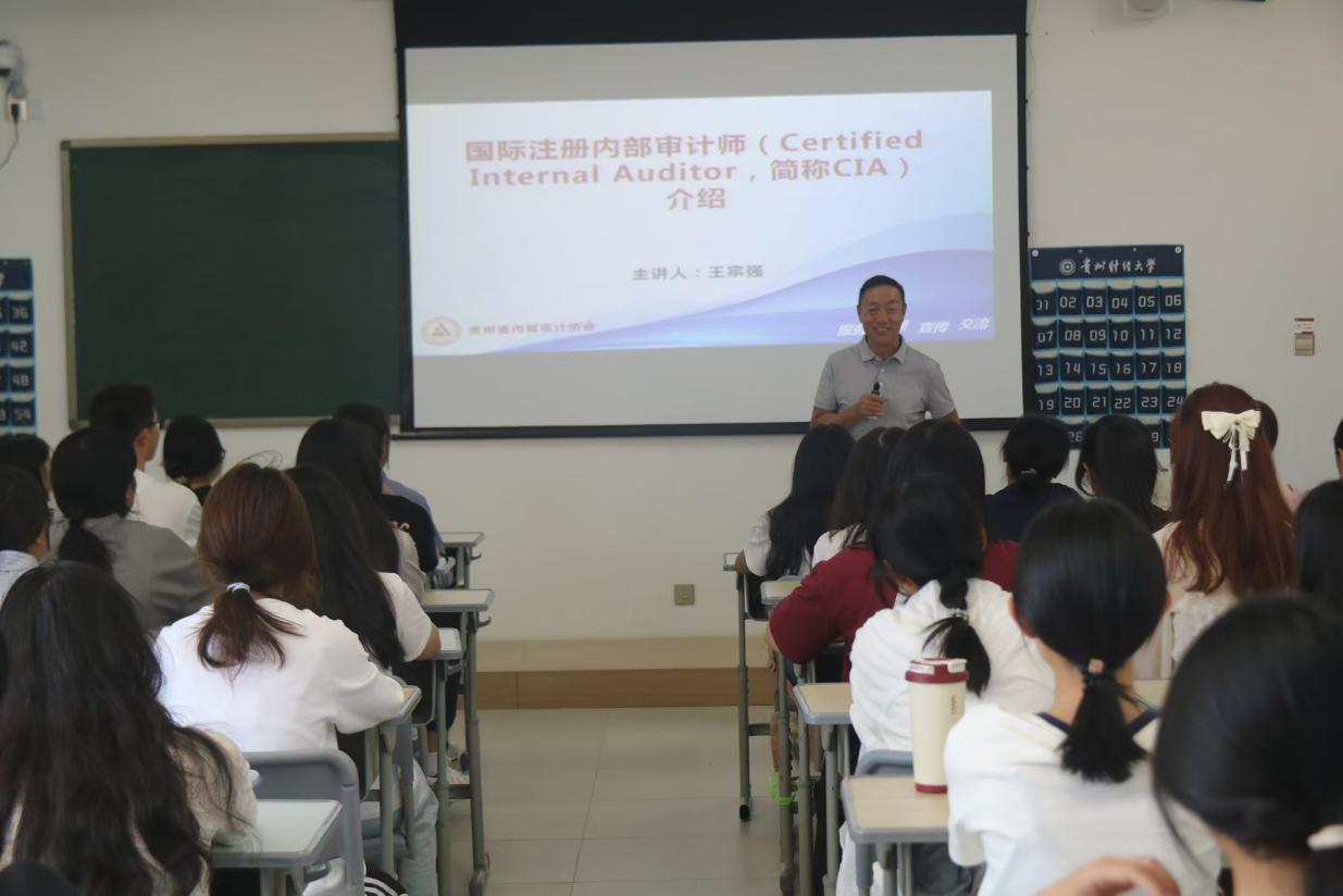 2024年9月24日下午,贵州省内部审计协会副秘书长兼办公室主任王宗强先生为William希尔官网入口员工开展了“国际注册内部审计师”推荐讲座,William希尔官网入口24级本科、24级研究生同学60余人参加了讲座。