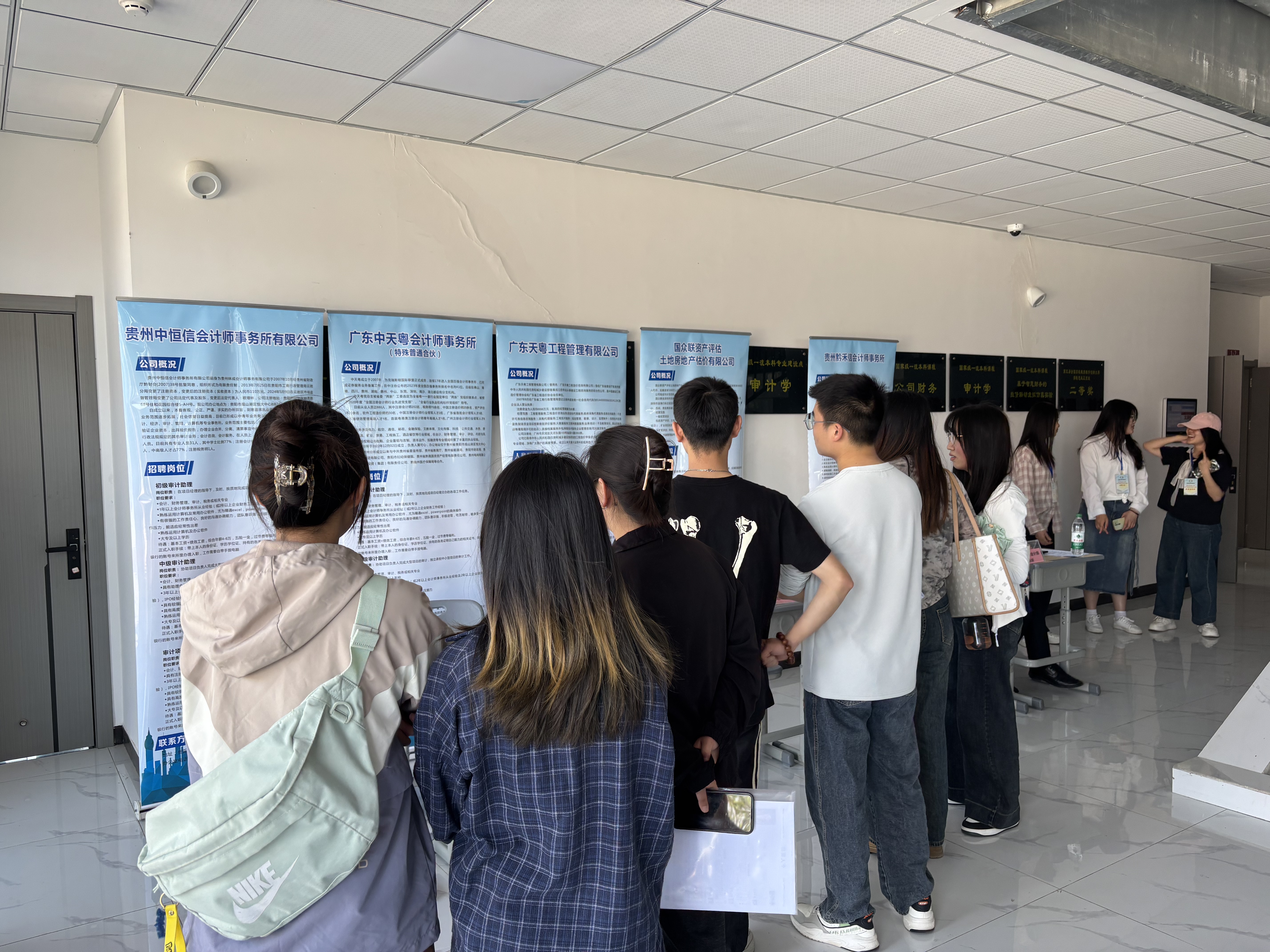 此次招聘会吸引了广东中天粤会计师事务所、贵州诚隆会计师事务所有限公司、贵州明诚舟会计师事务所、贵州中恒信会计师事务所有限公司、湖南天平正大会计师事务所贵州分所、中审华会计师事务所贵州分所、贵州智软科技(集团)有限公司、国众联资产评估土地房地产估价有限公司、广东天粤工程管理有限公司、贵州黔禾信会计师事务所共计10家用人单位设摊揽才。这些企业对会计专业人才有着强烈需求,提供的岗位涵盖了会计核算、财务管理、审计、资产评估等多个细分领域,总计超过50个优质岗位。招聘会现场秩序井然,气氛热烈。William希尔官网入口的员工们精心准备了个人简历,满怀期待地穿梭于各个展位之间,与招聘人员自信交流,深入了解企业岗位要求、薪资待遇以及未来发展前景。