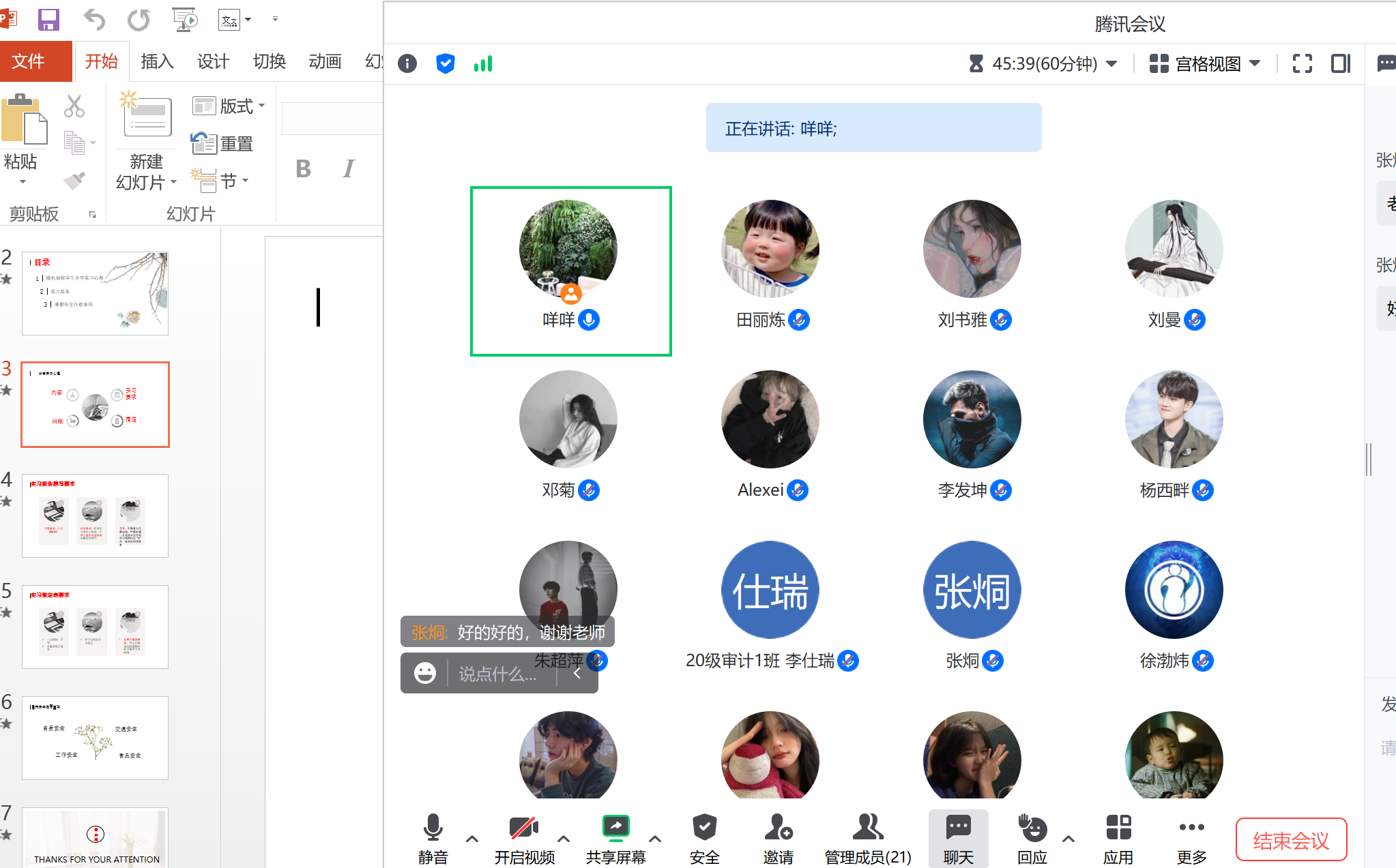 7月29日下午,审计系李扬老师通过腾讯会议开展暑期专业实习线上教学巡查。
