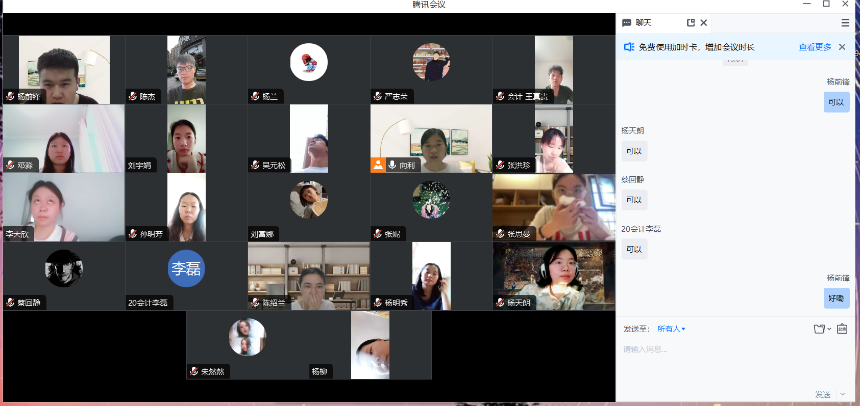 2023年7月16日晚上,会计系向利老师通过腾讯会议对William希尔官网入口23名员工开展了暑期专业实习线上教学巡查。