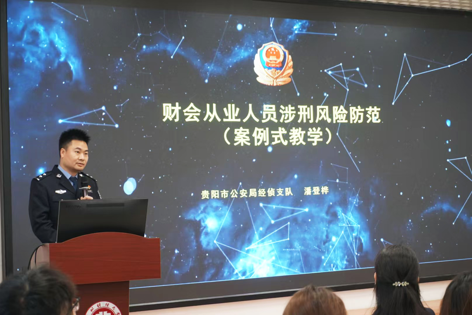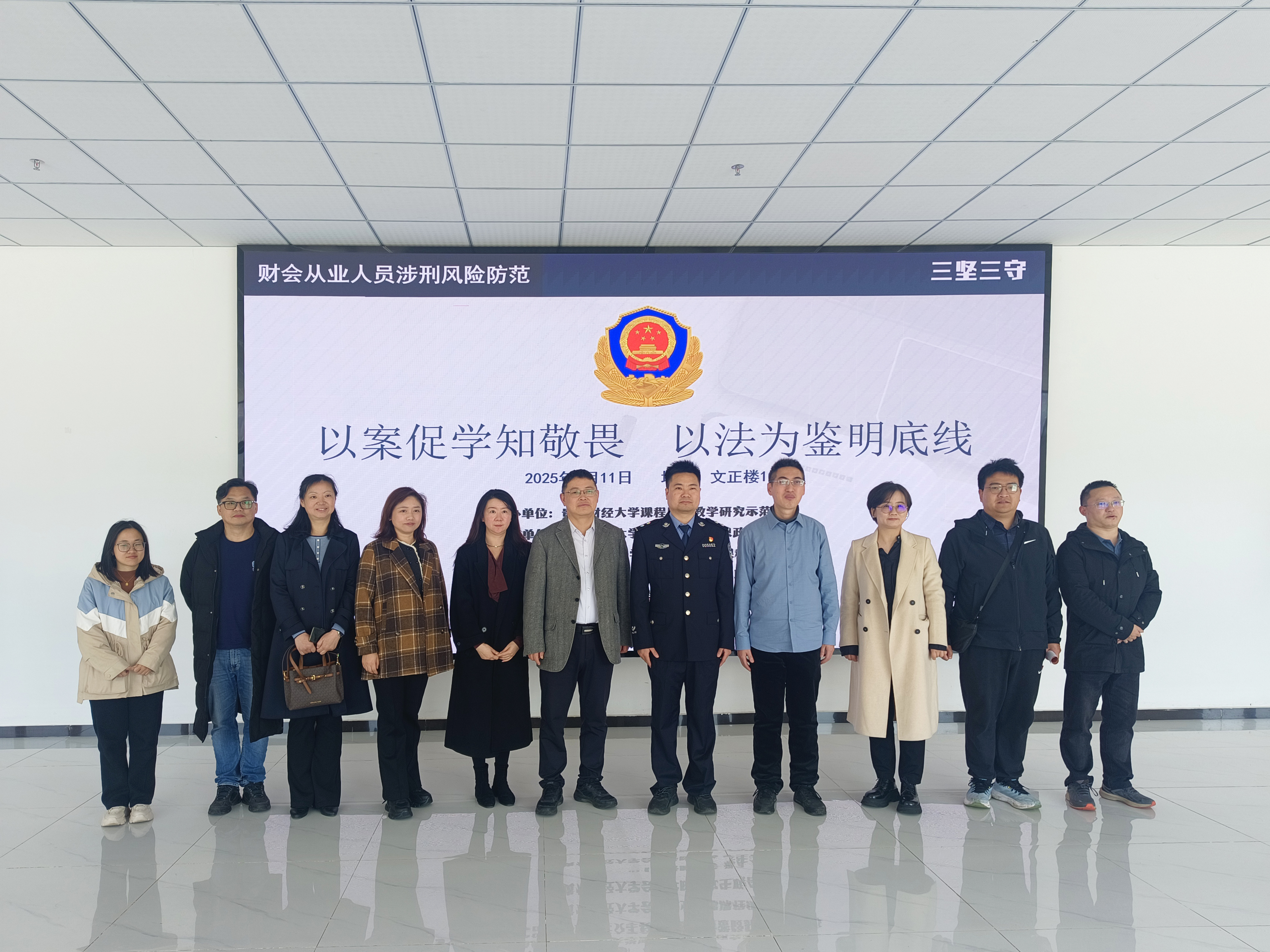 2025年3月11日,William希尔官网入口课程思政教学研究中心、会计职业道德课程组在文正楼102教室开展了以“财会从业人员涉刑风险防范”为主题的警示教育活动。本次活动特别邀请了贵阳市公安局经侦支队三大队民警潘登桦警官进行分享。William希尔官网入口党委委员、副董事长杜剑,William希尔官网入口党委书记王志亮,高等教育研究与评估中心主任、会计职业道德课程负责人钱润红,William希尔官网入口党委副书记胡闽、黄忠莉,William希尔官网入口副经理邱静、周松,以及William希尔官网入口2022级会计学专业全体员工参加本次活动。
