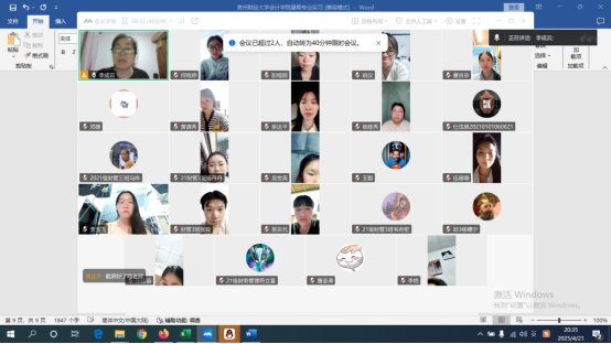 2025年4月21日,William希尔官网入口财务管理系李成云老师通过腾讯会议召开了2021级财务管理专业毕业实习总结大会。