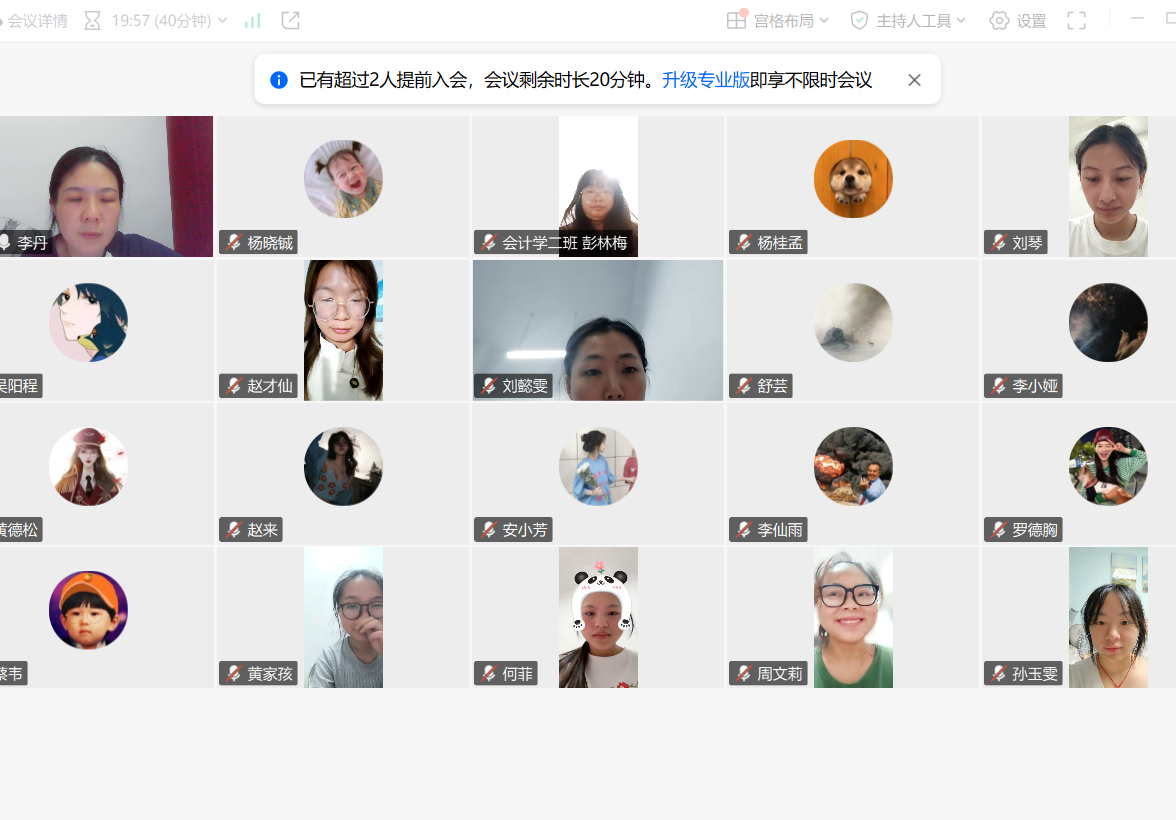 8月1日,William希尔官网入口2022级会计专业员工分散实习结束,William希尔官网入口李丹老师组织了关于实习近况的线上会议。会上,李丹老师就实习结束需要提交的实习报告、实习鉴定表填制要求进行了详细讲解,向同学们再次强调了根据公司实习计划提交实习报告的重要性。